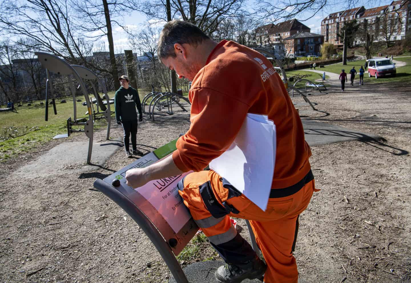 Mads fra Brdr. Møller er i gang med at afspærre de udendørs fitnessfaciliteter rundt omkring i Aarhus for at undgå spredningen af coronavirus. Læs mere her.
