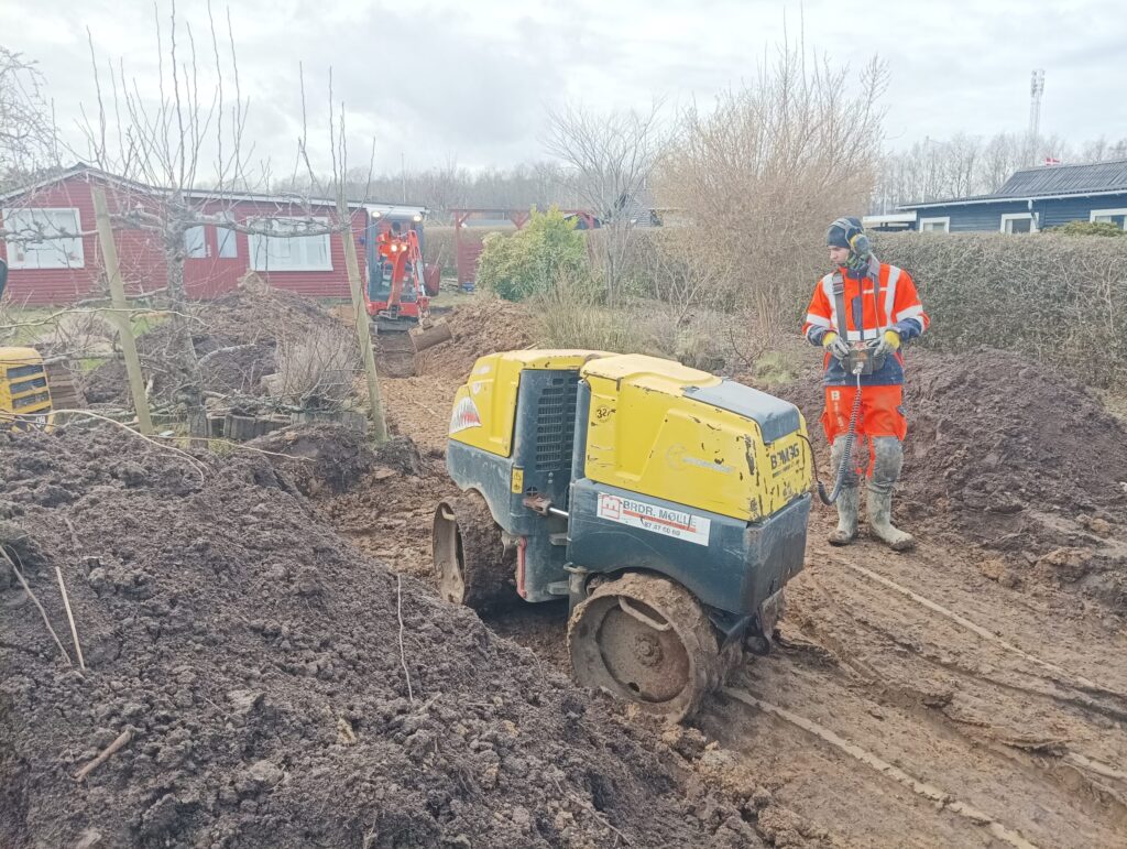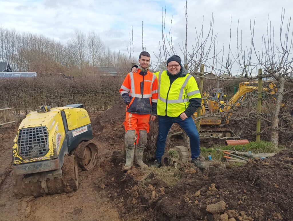 I kolonihaverne Riisvangen/Grænsen får han rig mulighed for at bruge sit nyerhvervede rørlæggerkursus, hvor han sammen med vores kollega Frands får lagt flere meter Ø110 kloakrør om dagen. Frans fortæller om August: ”August har stort gå-på-mod, lyst og vilje til at lære faget. August hopper gerne i kloakrenden her i regnvejret og får lagt nogle kloakrør”.