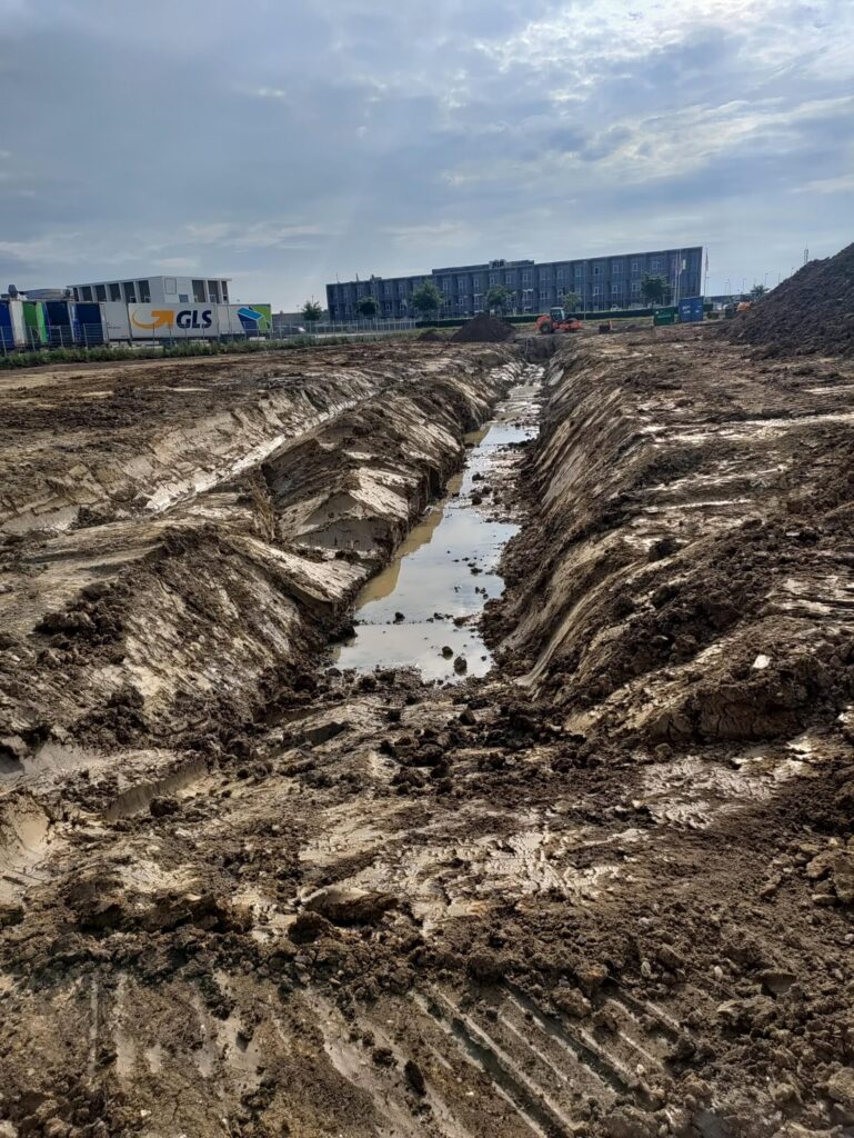 Vi startede arbejdet kl. 6 fredag morgen, hvor Frank holdt klar med en skiltevogn fra Saferoad, og Torben Bach stillede med to lastbiler, en med kran til at læsse, og en til at køre jord væk.
