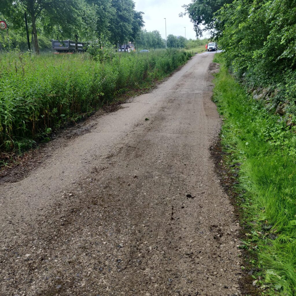 Vi havde opstart i uge 14, hvor vi startede med muldafrømning, udgravning af vejkasse samt lægning af kloak.