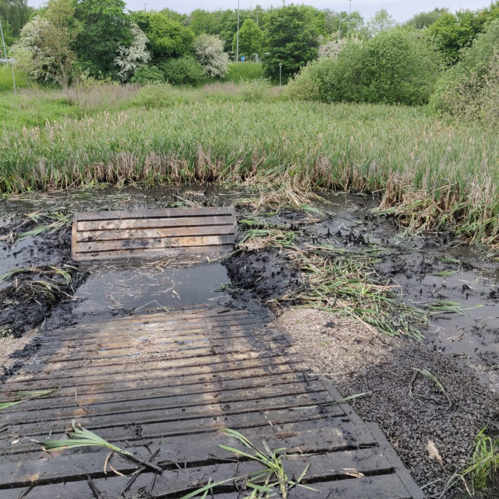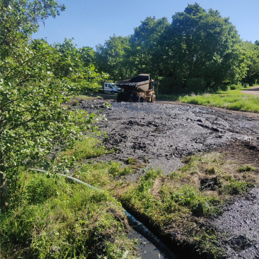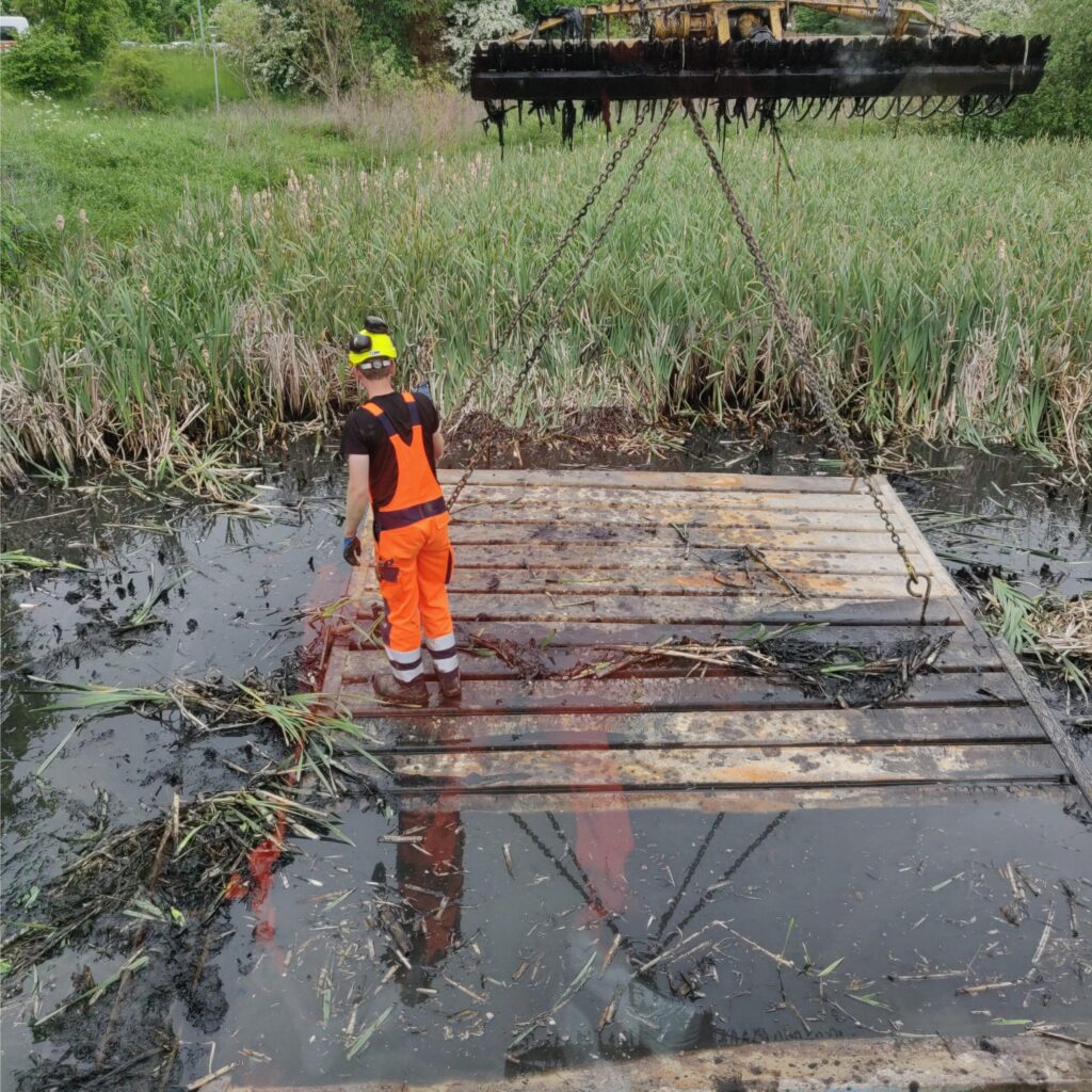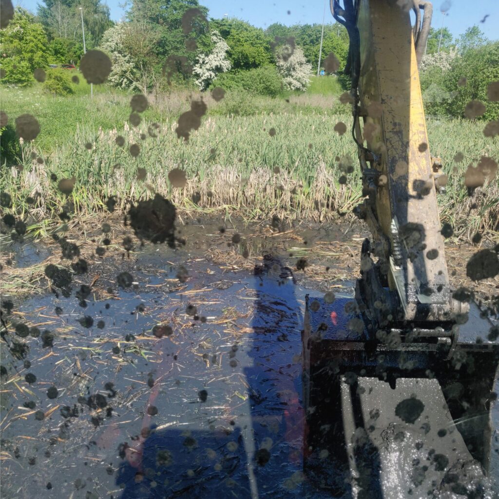 Så kom vi godt i gang i Holmstrup, hvor vi skal lave en oprensning af grøder og fjernelse af slam og rødder i bunden.