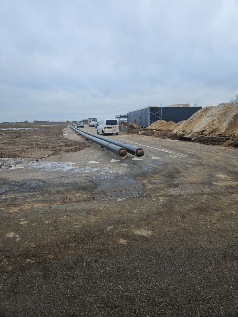Vi er startet op i Videbæk med etablering af transmissionsledninger mellem Videbæk Varmes kommende nye varmecentral og det eksisterende fjernvarmenet, hvor forberedelserne til at udføre styret underboring under et moseområde er kommet godt i gang.