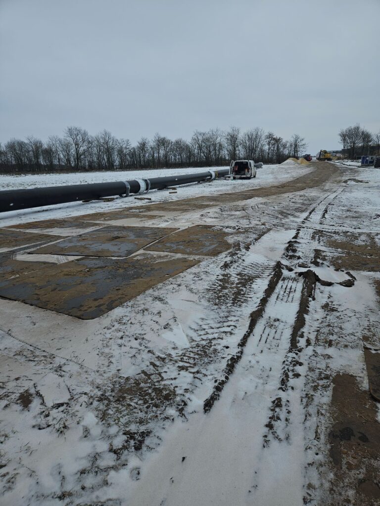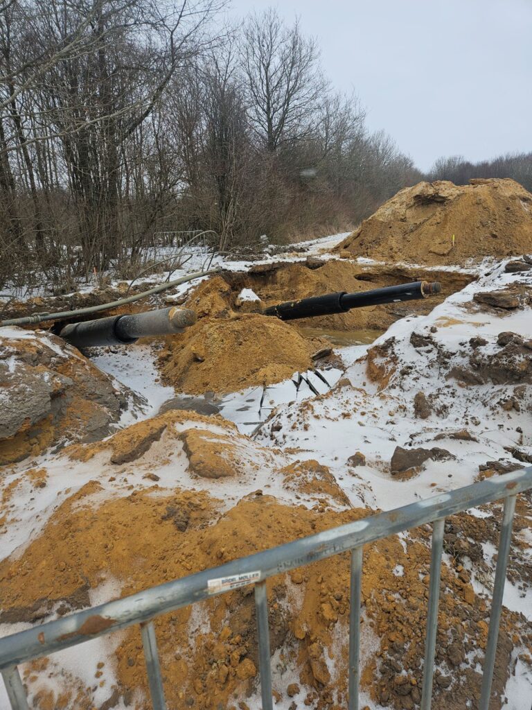 Vi er nu kommet igennem/under mosen og Videbækken med alle 3 boringer, 1 stk ø160 og 2 stk ø500 a 174 meter og er i gang med at få etableret sladrebrønde i enderne.